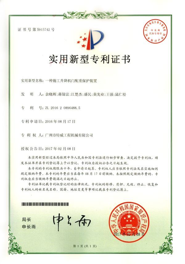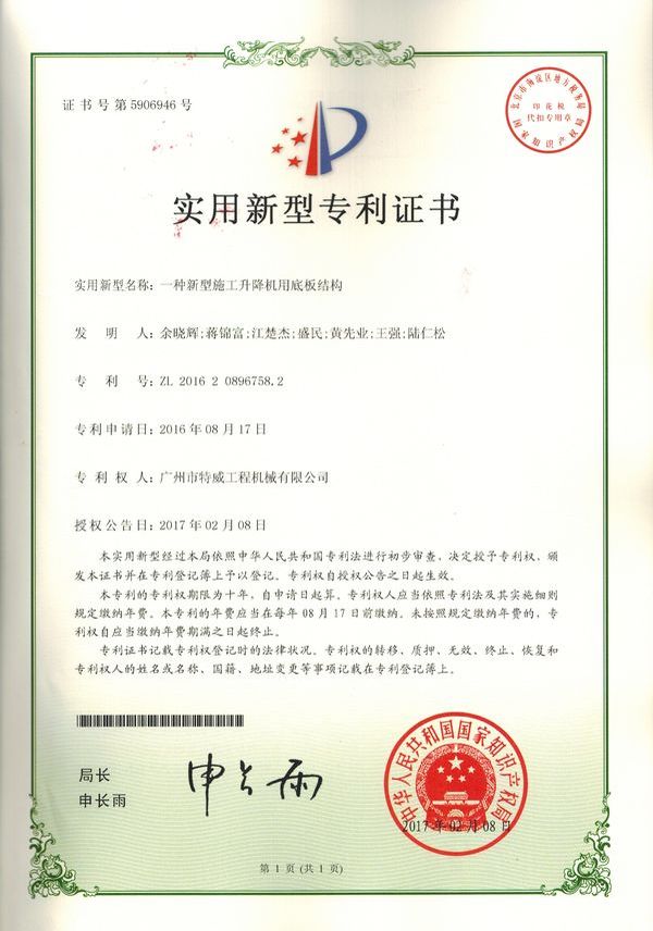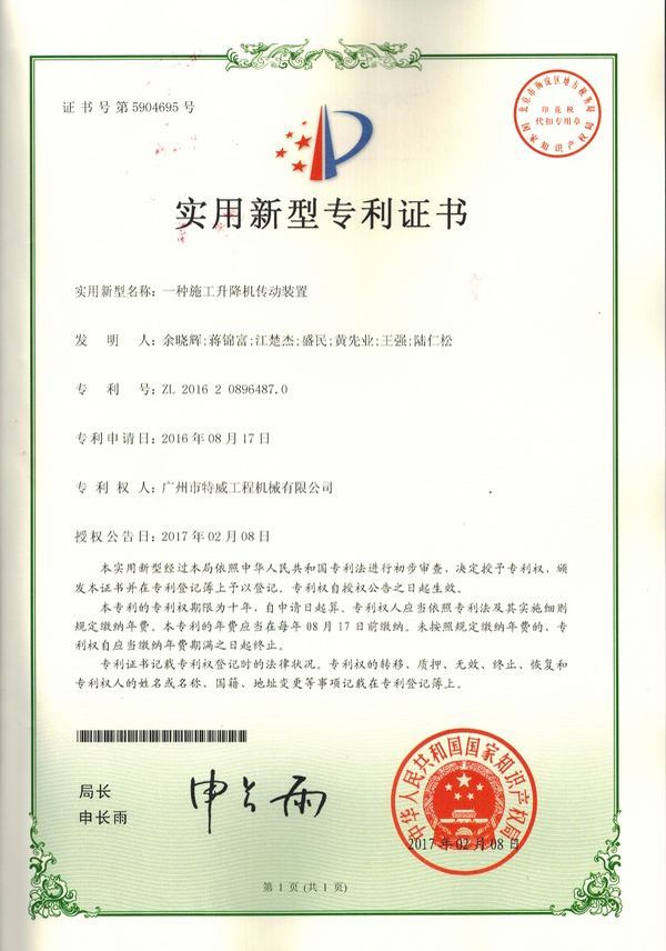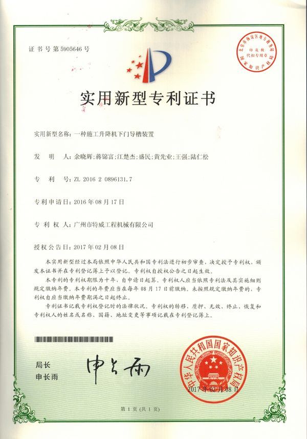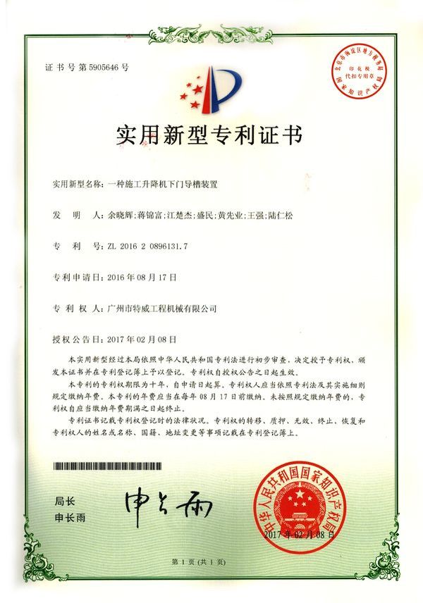 廣州市特威工程機(jī)械有限公司地處廣州市白云區(qū)神山鎮(zhèn),廣清高速神山出口附近,是一家施工升降機(jī)的專業(yè)生產(chǎn)廠家。公司成立于2011年,占地100000多平方米,注冊(cè)資金1060萬(wàn)元,現(xiàn)有員工300余人其中工程技術(shù)人員33人,高級(jí)技術(shù)人員52人。
